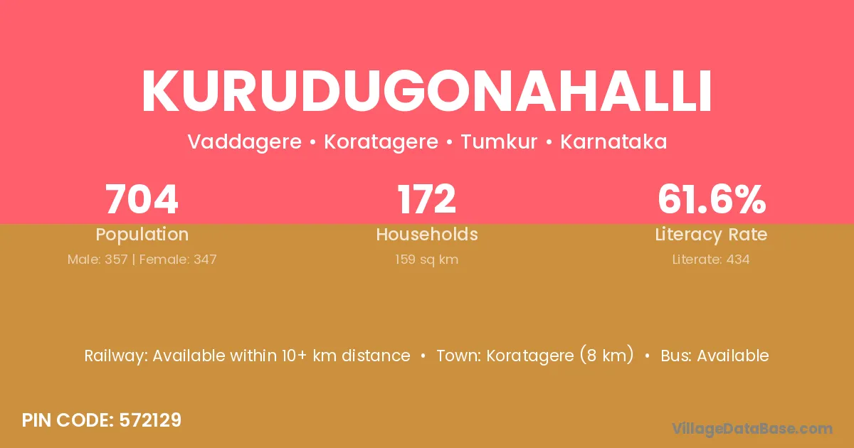 Koratagere (8 km) is the nearest town to Kurudugonahalli village for major economic activities and is located approximately 8 km away.