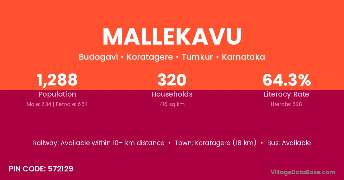 Koratagere (18 km) is the nearest town to Mallekavu village for major economic activities and is located approximately 18 km away.