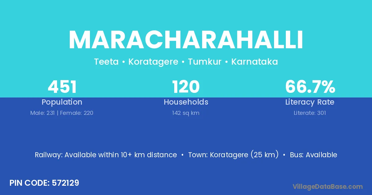 Koratagere (25 km) is the nearest town to Maracharahalli village for major economic activities and is located approximately 25 km away.