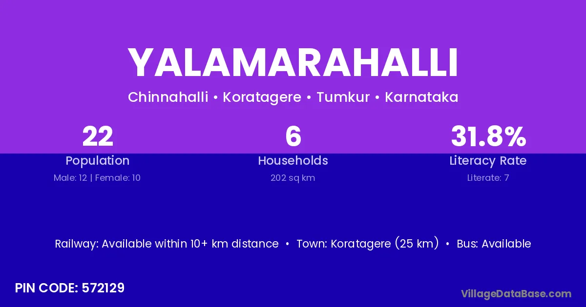 Yalamarahalli village has a total population of 22 people, of which 12 are males and 10 are females.