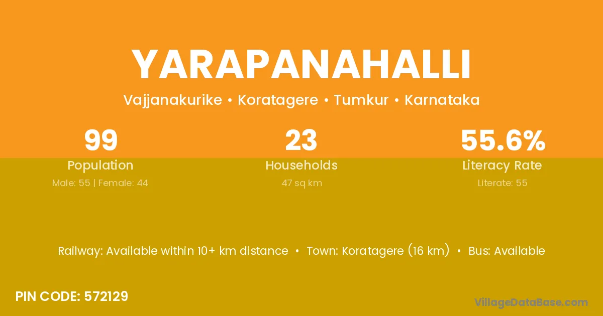 Koratagere (16 km) is the nearest town to Yarapanahalli village for major economic activities and is located approximately 16 km away.
