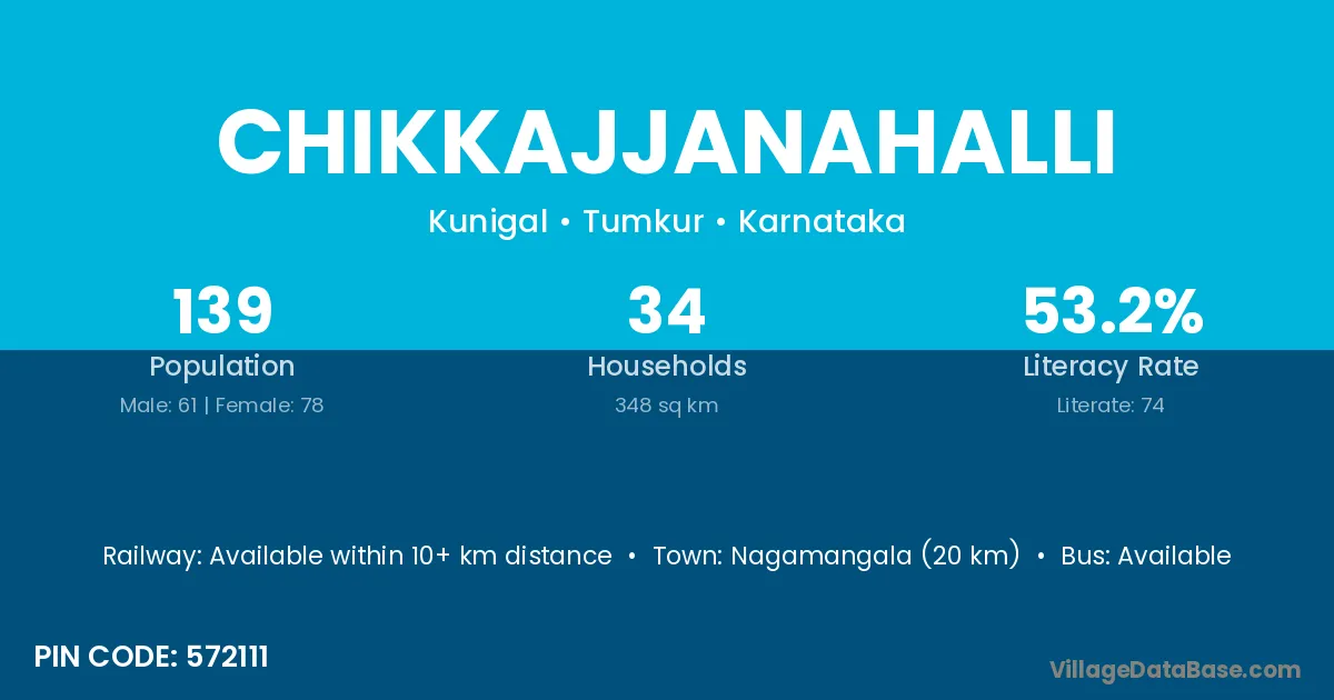 Chikkajjanahalli village has a total population of 139 people, of which 61 are males and 78 are females.