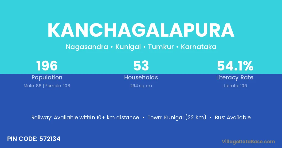 Kunigal (22 km) is the nearest town to Kanchagalapura village for major economic activities and is located approximately 22 km away.