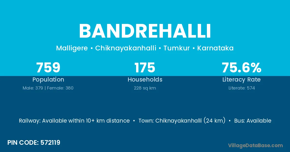 Madhugiri (7 km) is the nearest town to Bandrehalli village for major economic activities and is located approximately 7 km away.