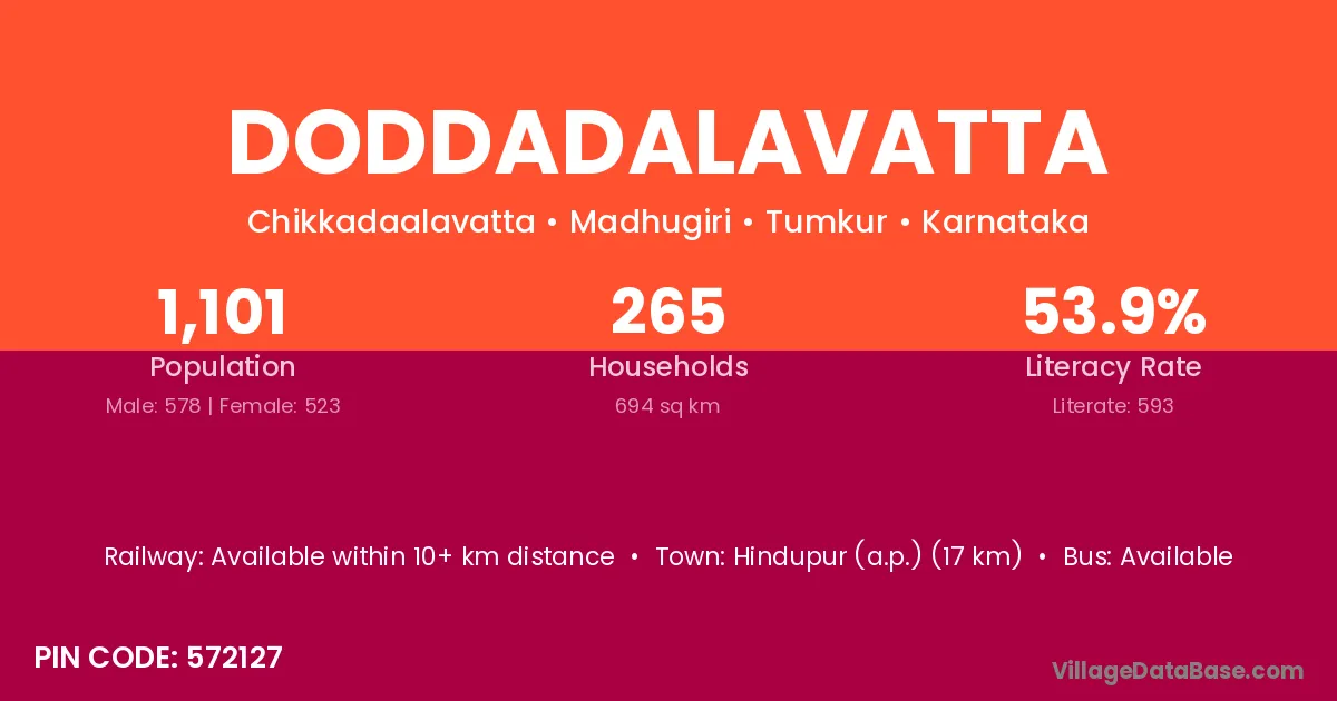 Doddadalavatta village has a total population of 1,101 people, of which 578 are males and 523 are females.