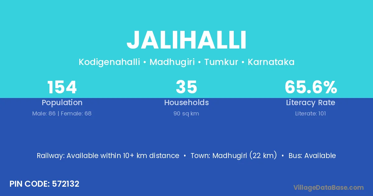 Madhugiri (22 km) is the nearest town to Jalihalli village for major economic activities and is located approximately 22 km away.