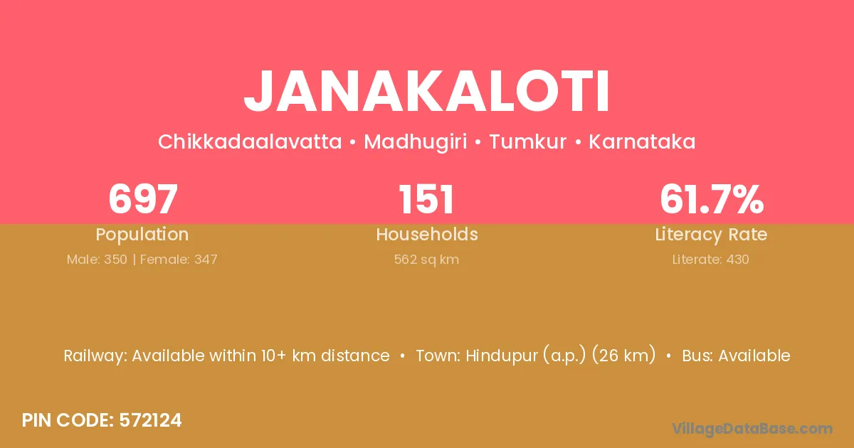 Hindupur (a.p.) (26 km) is the nearest town to Janakaloti village for major economic activities and is located approximately 26 km away.