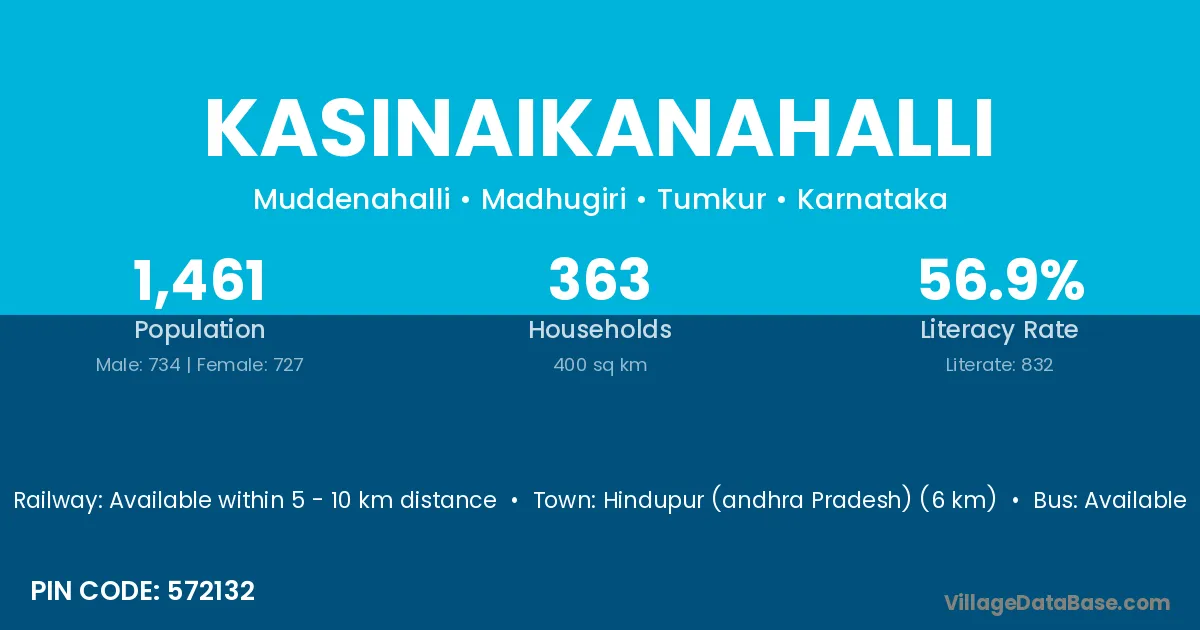 Hindupur (andhra Pradesh) (6 km) is the nearest town to Kasinaikanahalli village for major economic activities and is located approximately 6 km away.