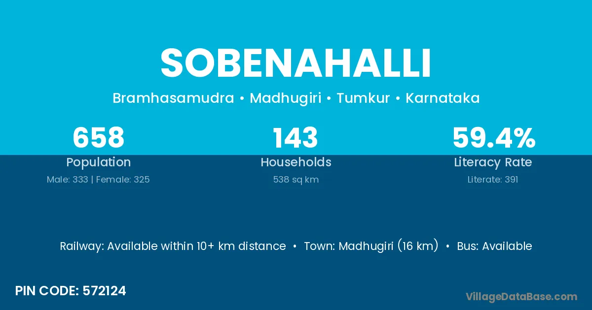 Madhugiri (16 km) is the nearest town to Sobenahalli village for major economic activities and is located approximately 16 km away.
