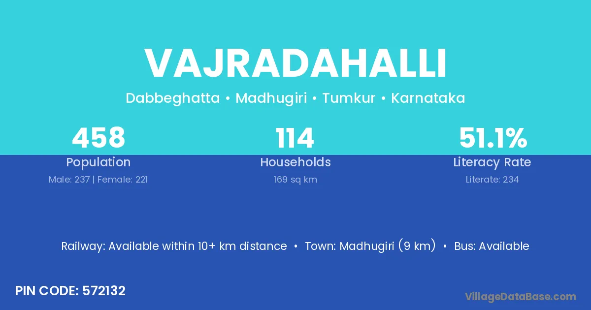Madhugiri (9 km) is the nearest town to Vajradahalli village for major economic activities and is located approximately 9 km away.