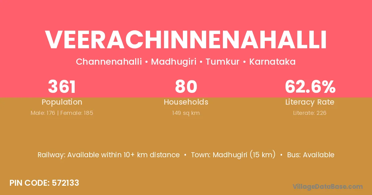 Madhugiri (15 km) is the nearest town to Veerachinnenahalli village for major economic activities and is located approximately 15 km away.
