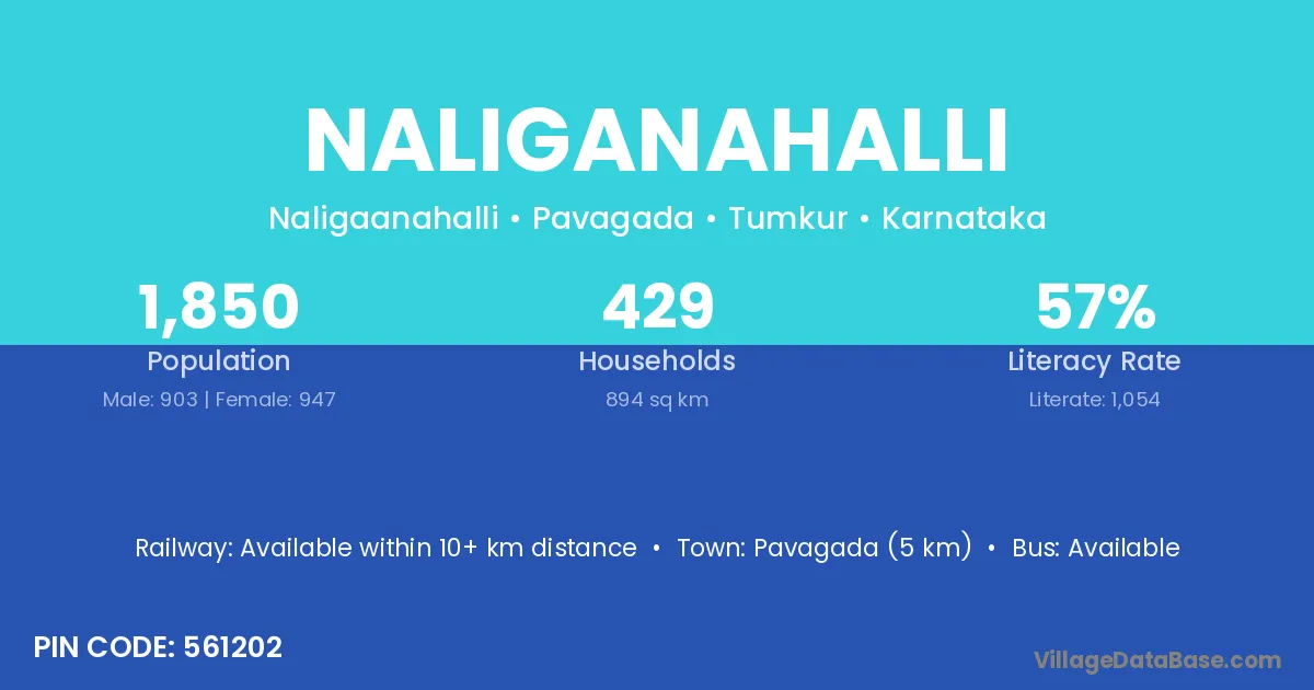 Pavagada (5 km) is the nearest town to Naliganahalli village for major economic activities and is located approximately 5 km away.