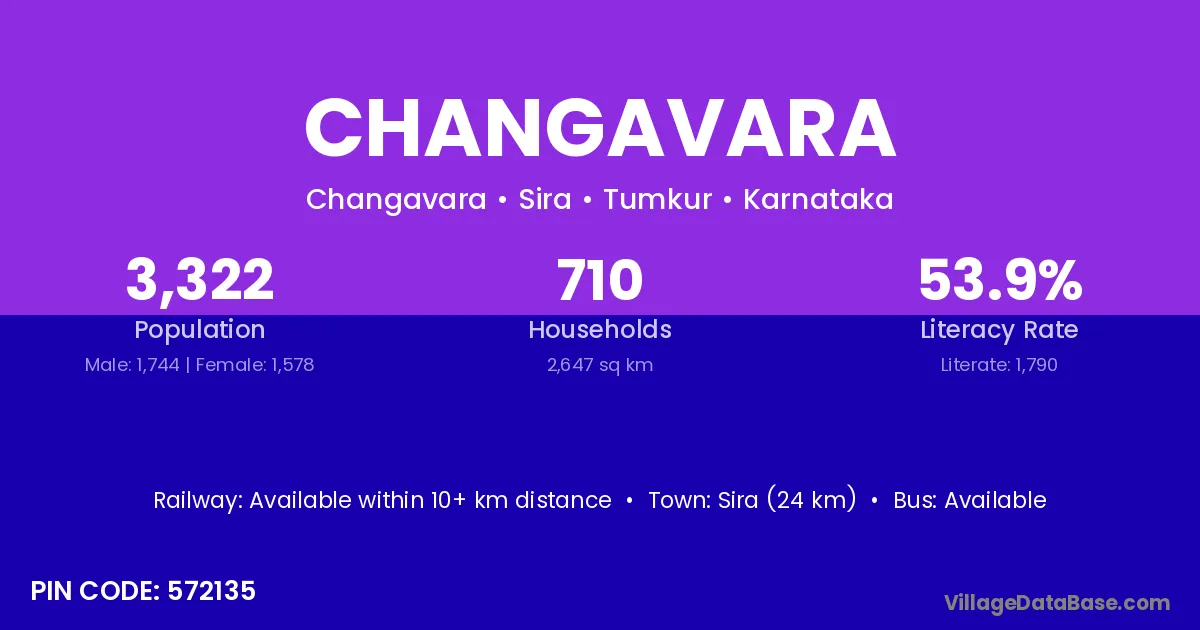 Sira (24 km) is the nearest town to Changavara village for major economic activities and is located approximately 24 km away.