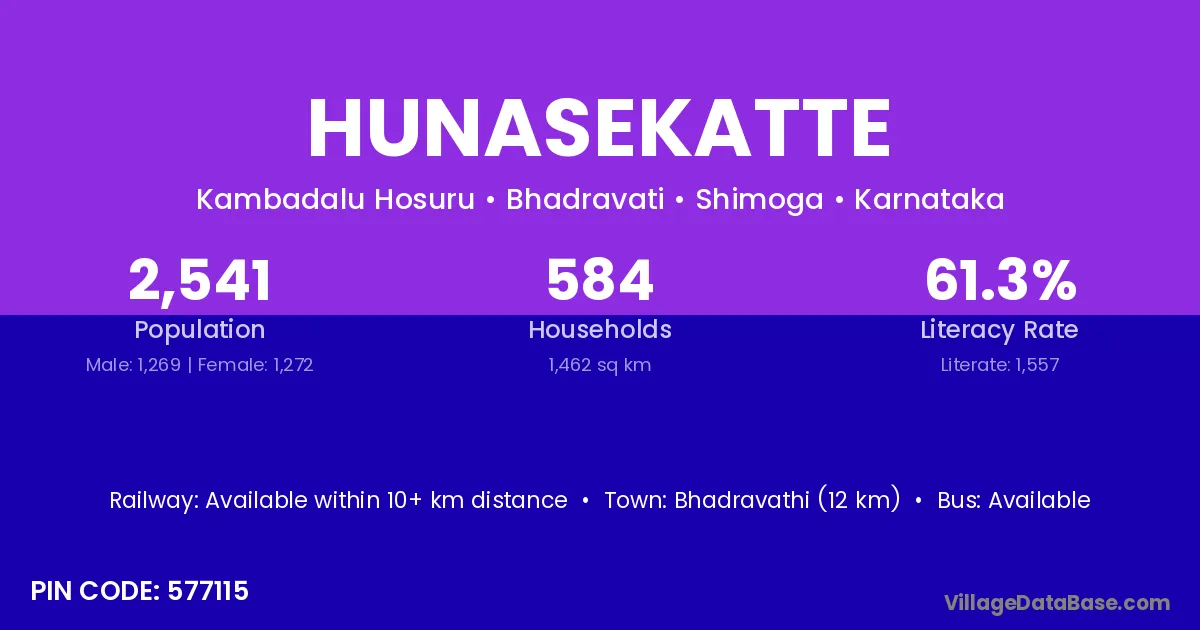 Hunasekatte village has a total population of 1,729 people, of which 861 are males and 868 are females.