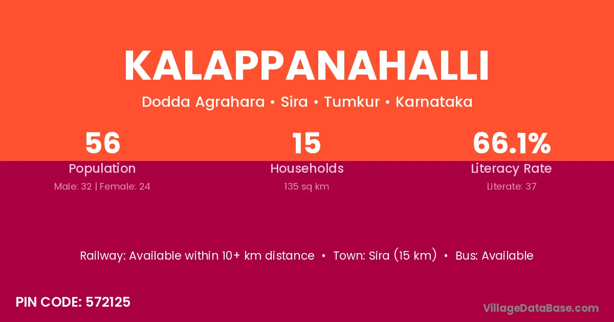 Kalappanahalli village has a total population of 56 people, of which 32 are males and 24 are females.