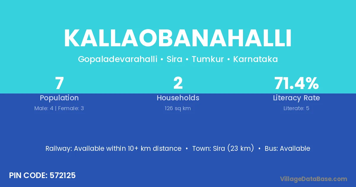 Sira (23 km) is the nearest town to Kallaobanahalli village for major economic activities and is located approximately 23 km away.