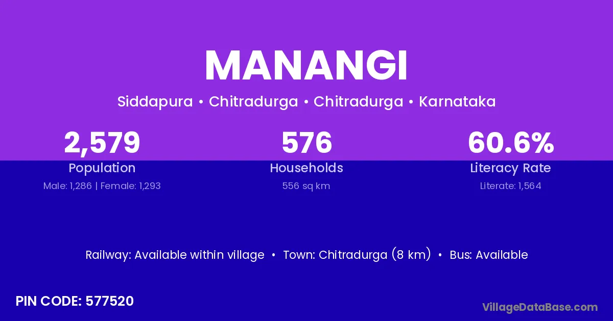 According to Census 2011 information, the village code of Manangi village is 572139.