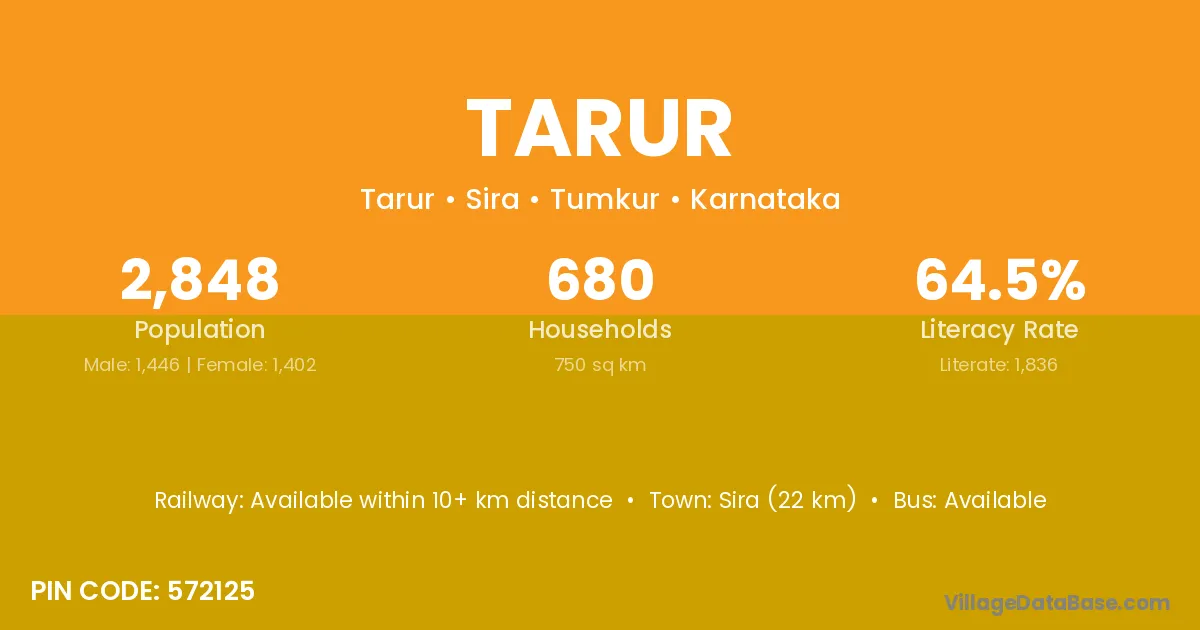 Sira (22 km) is the nearest town to Tarur village for major economic activities and is located approximately 22 km away.