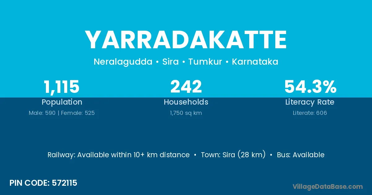 Sira (28 km) is the nearest town to Yarradakatte village for major economic activities and is located approximately 28 km away.