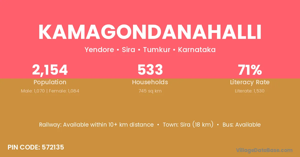 Chiknayakanhalli (12 km) is the nearest town to Kamagondanahalli village for major economic activities and is located approximately 12 km away.