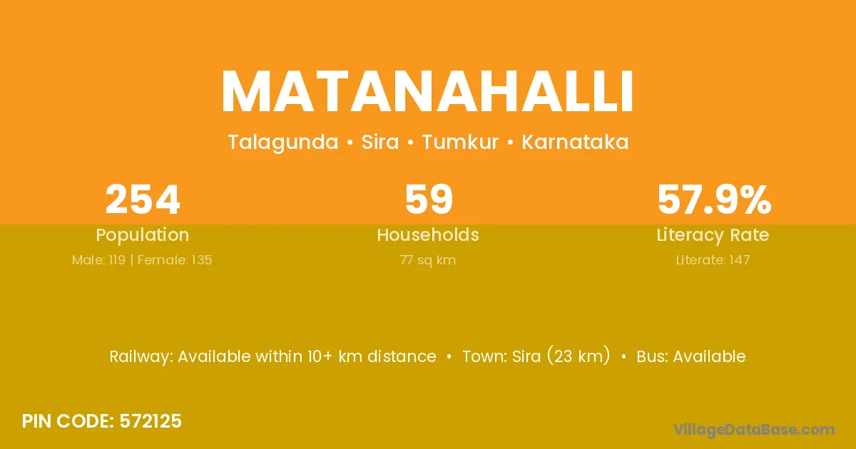 Tiptur (22 km) is the nearest town to Matanahalli village for major economic activities and is located approximately 22 km away.