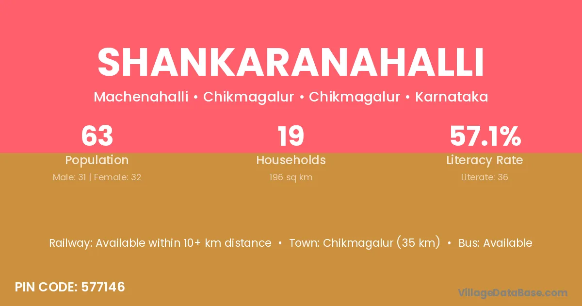 Shankaranahalli village has a total population of 46 people, of which 24 are males and 22 are females.