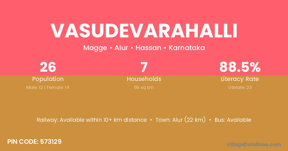 The literacy rate of Vasudevarahalli village is 74.26%. Male literacy stands at 80.00% and female literacy at 68.79%.