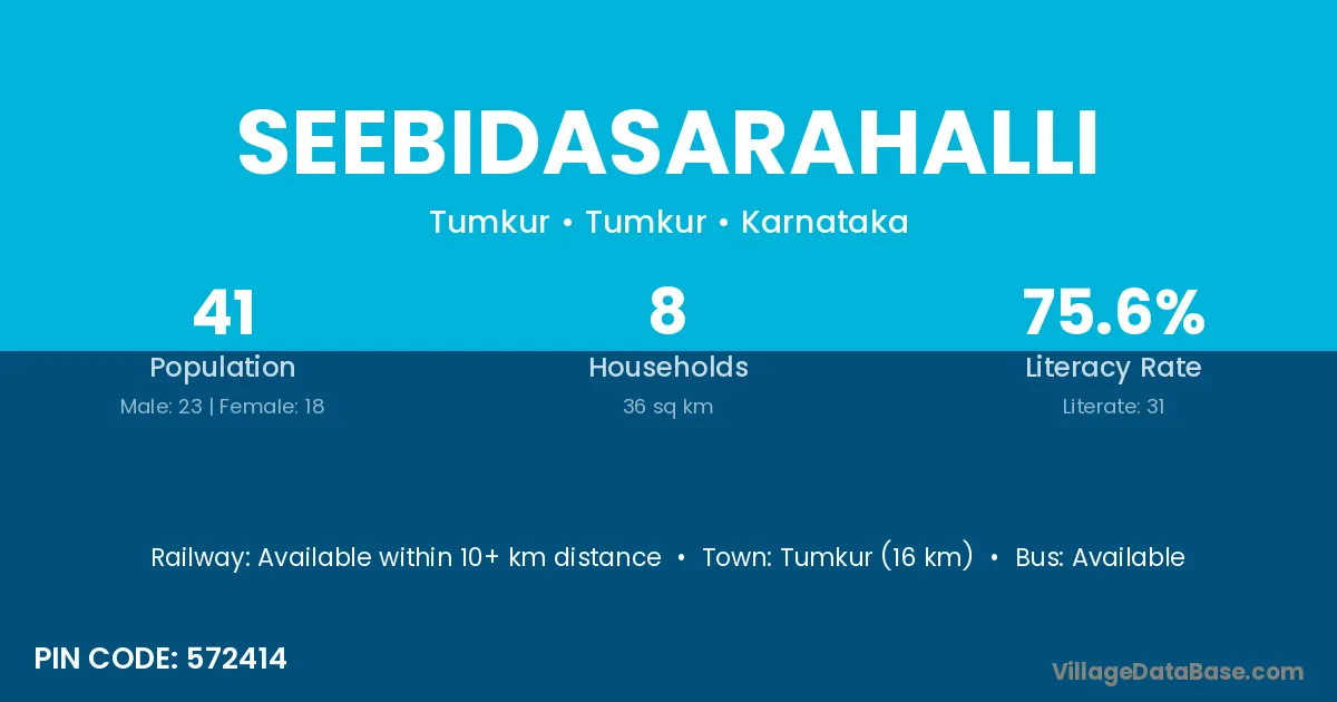 Seebidasarahalli village has a total population of 41 people, of which 23 are males and 18 are females.