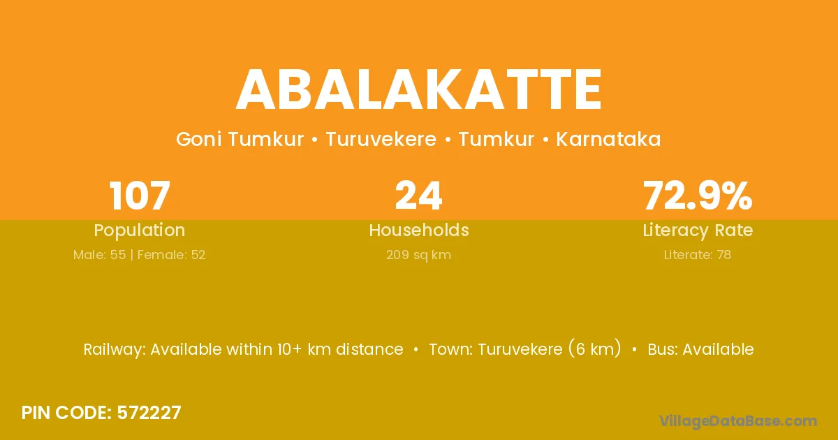 Turuvekere (6 km) is the nearest town to Abalakatte village for major economic activities and is located approximately 6 km away.
