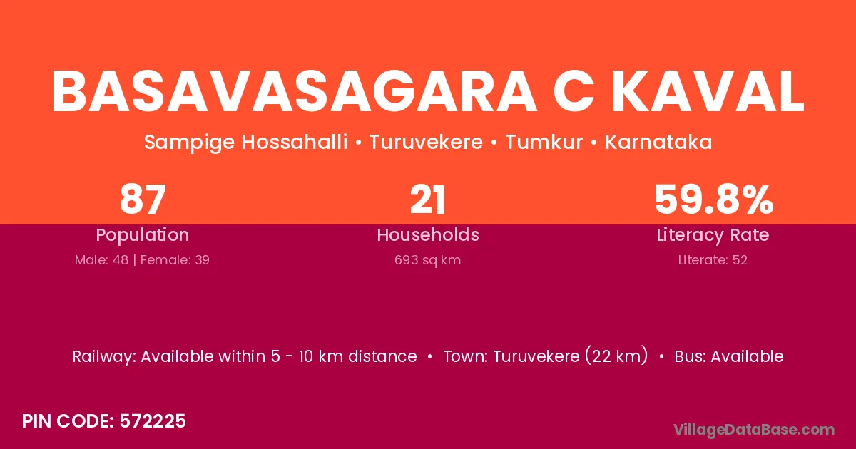 Turuvekere (22 km) is the nearest town to Basavasagara C Kaval village for major economic activities and is located approximately 22 km away.