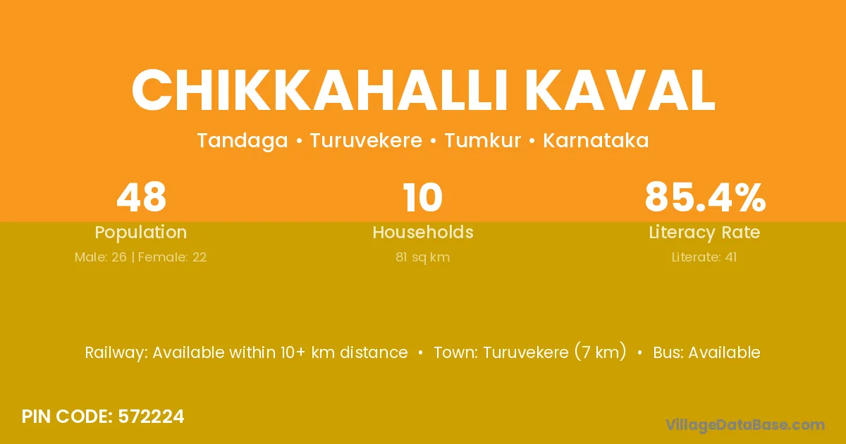 Chikkahalli Kaval village has a total population of 48 people, of which 26 are males and 22 are females.