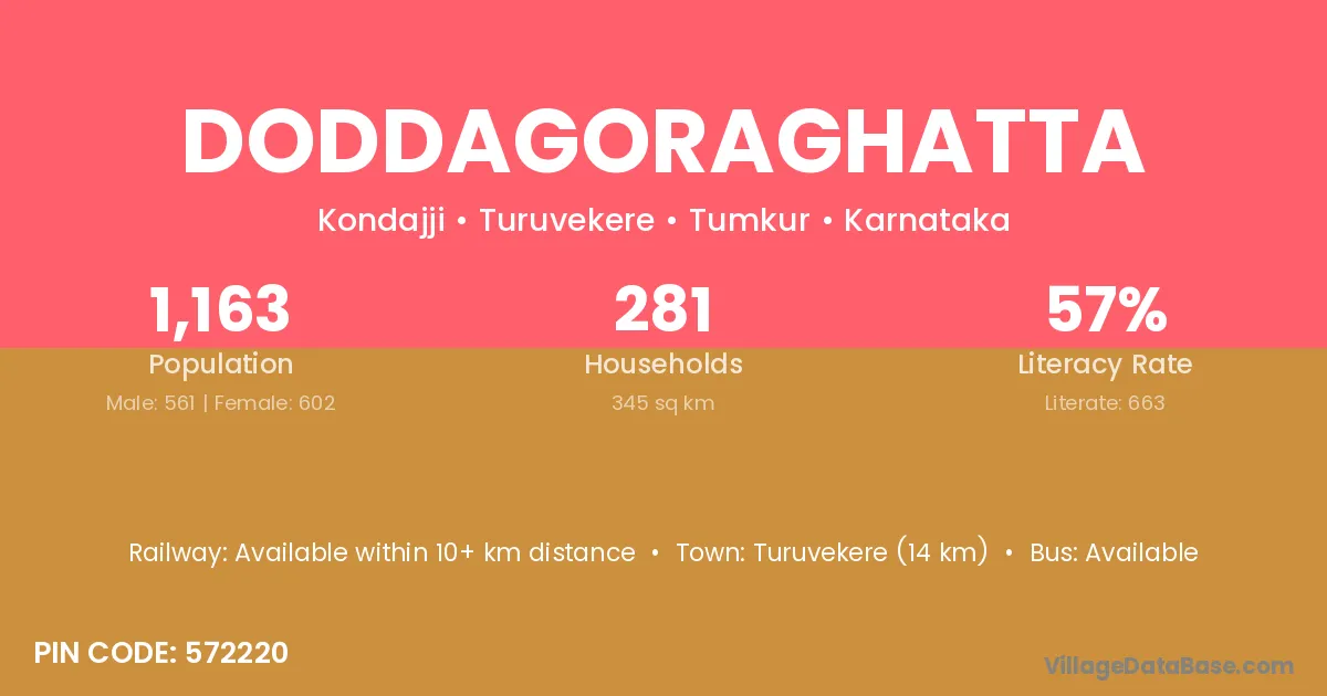 Doddagoraghatta village has a total population of 1,163 people, of which 561 are males and 602 are females.