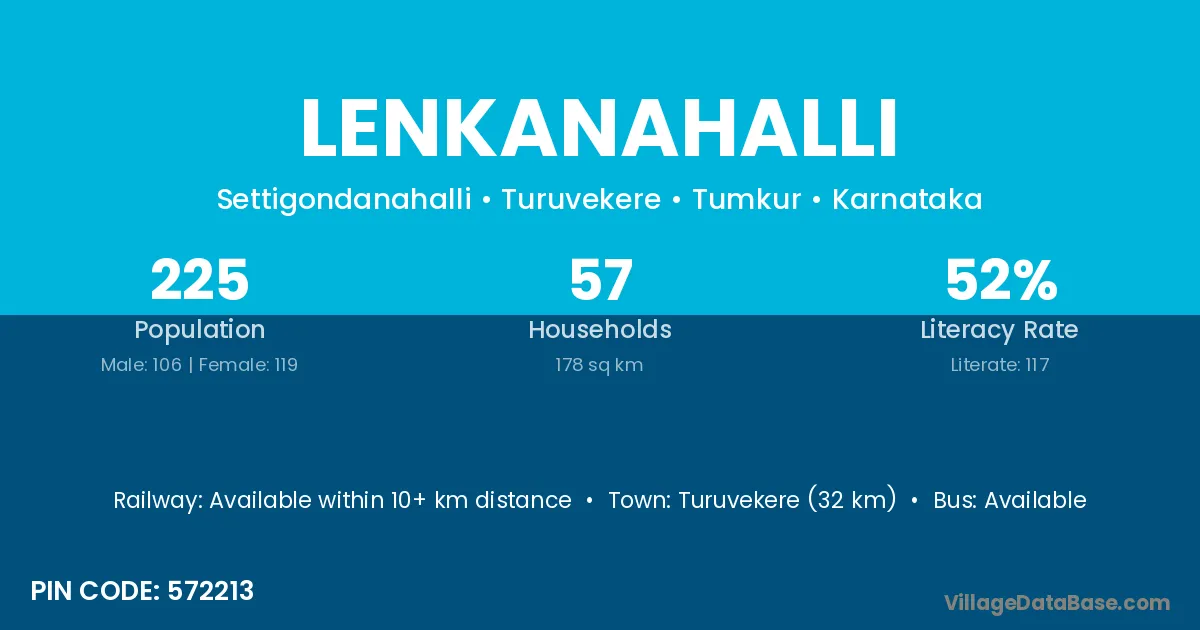 Turuvekere (32 km) is the nearest town to Lenkanahalli village for major economic activities and is located approximately 32 km away.