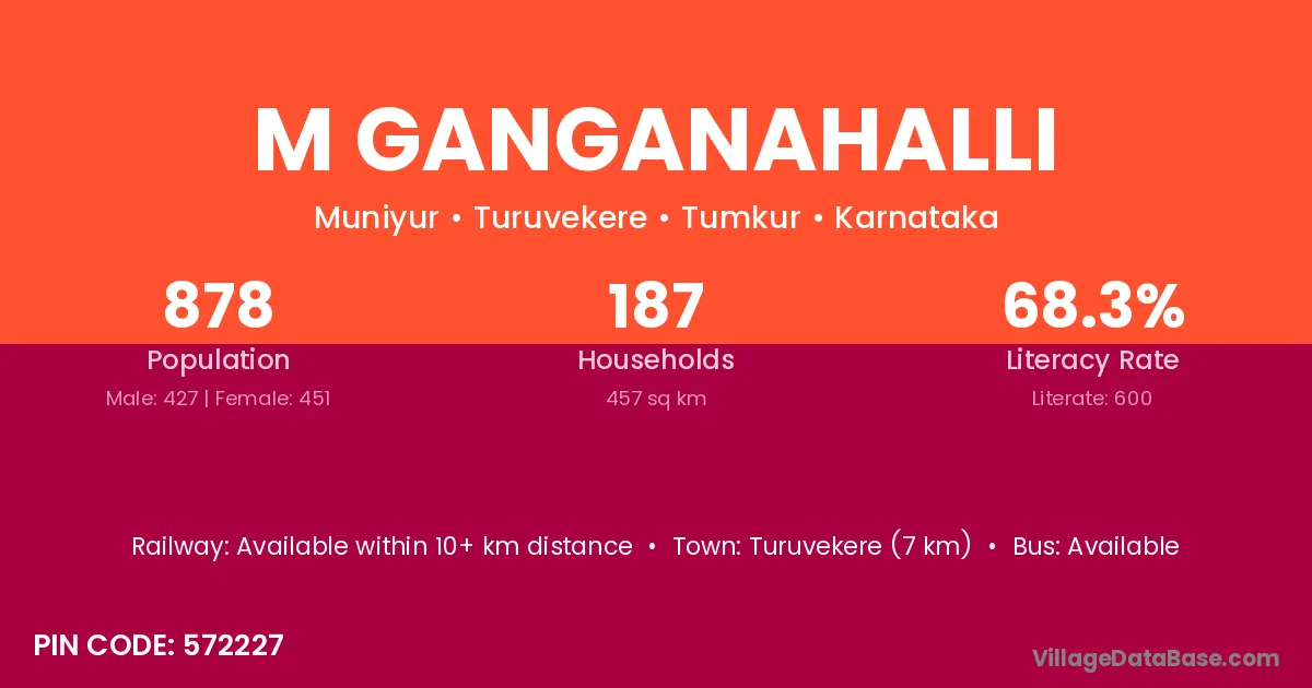 Turuvekere (7 km) is the nearest town to M Ganganahalli village for major economic activities and is located approximately 7 km away.
