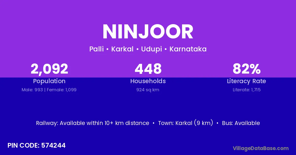 Karkal (9 km) is the nearest town to Ninjoor village for major economic activities and is located approximately 9 km away.