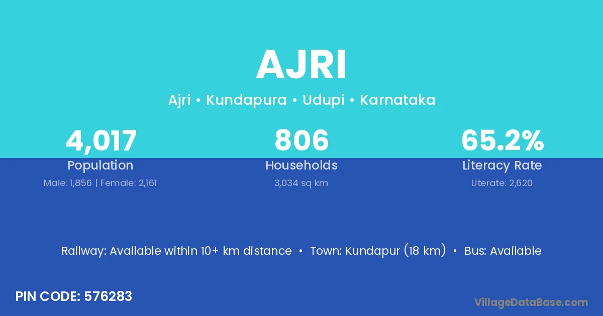 Kundapur (18 km) is the nearest town to Ajri village for major economic activities and is located approximately 18 km away.