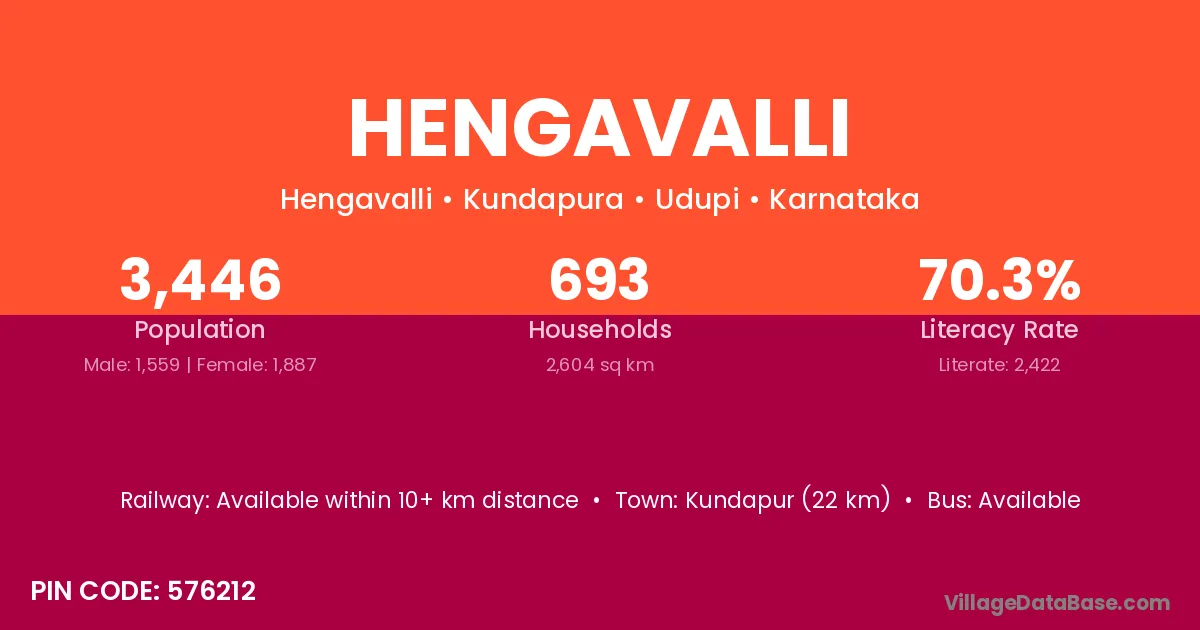 Kundapur (22 km) is the nearest town to Hengavalli village for major economic activities and is located approximately 22 km away.