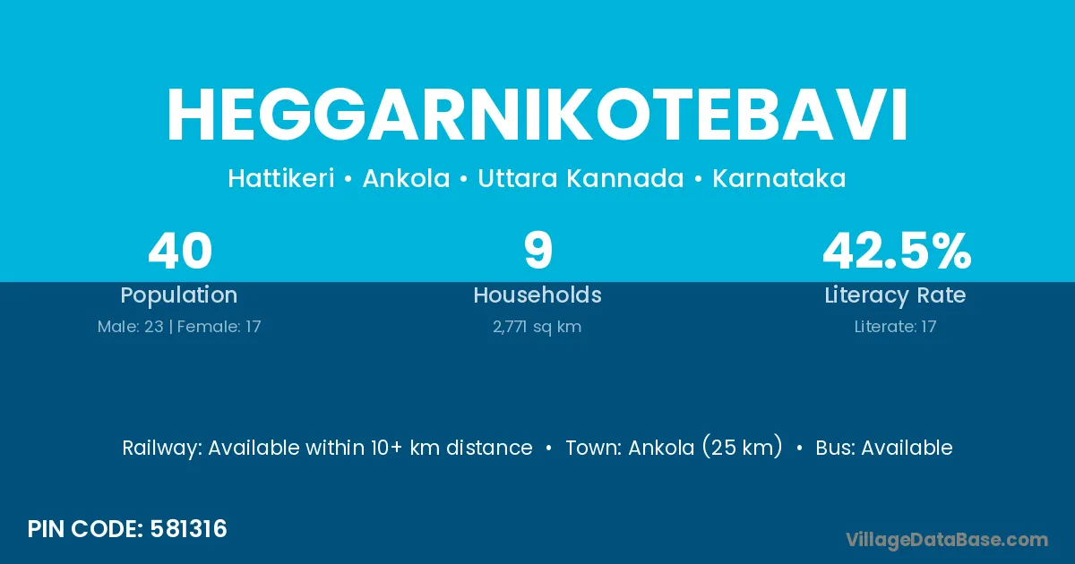 Ankola (25 km) is the nearest town to Heggarnikotebavi village for major economic activities and is located approximately 25 km away.