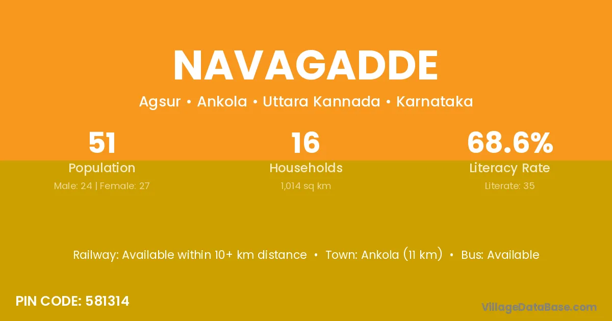 Ankola (11 km) is the nearest town to Navagadde village for major economic activities and is located approximately 11 km away.