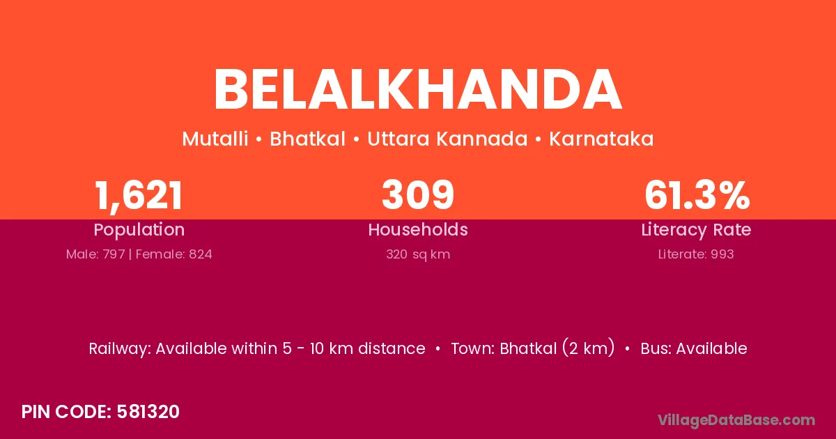 Bhatkal (2 km) is the nearest town to Belalkhanda village for major economic activities and is located approximately 2 km away.