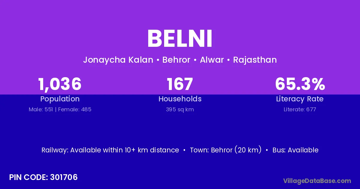 There are approximately 393 households in Belni village.