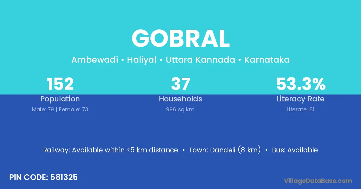 Dandeli (8 km) is the nearest town to Gobral village for major economic activities and is located approximately 8 km away.