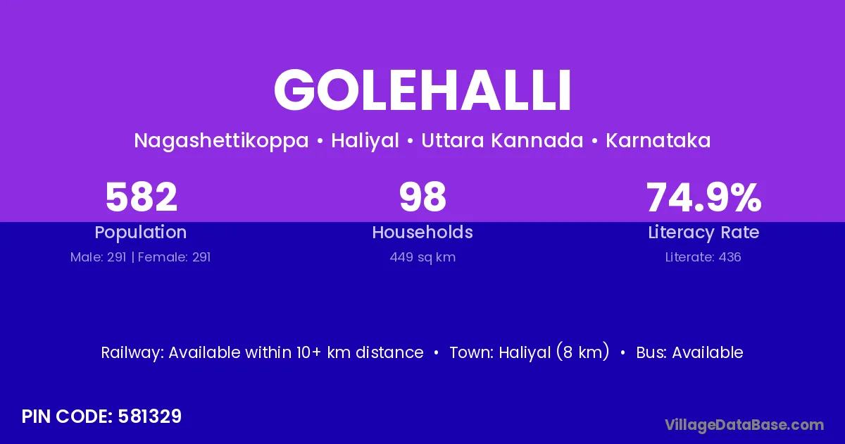 Haliyal (8 km) is the nearest town to Golehalli village for major economic activities and is located approximately 8 km away.