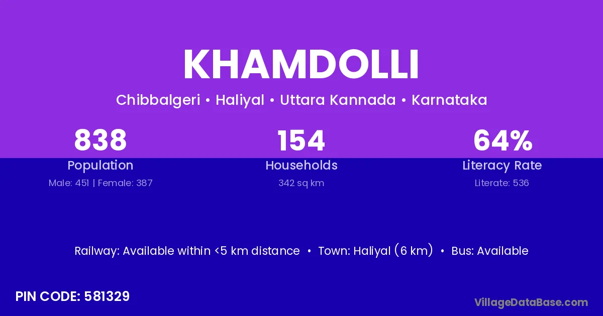 Haliyal (6 km) is the nearest town to Khamdolli village for major economic activities and is located approximately 6 km away.