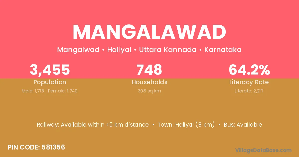 Haliyal (8 km) is the nearest town to Mangalawad village for major economic activities and is located approximately 8 km away.
