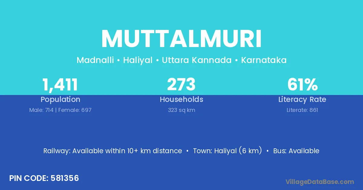 Haliyal (6 km) is the nearest town to Muttalmuri village for major economic activities and is located approximately 6 km away.