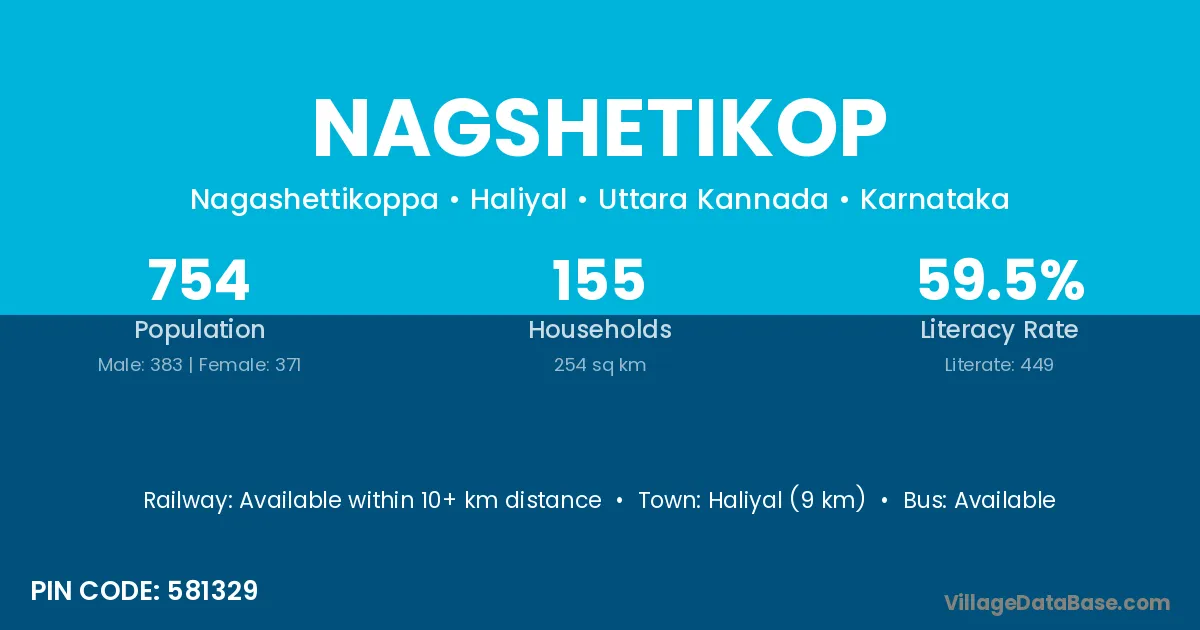 Haliyal (9 km) is the nearest town to Nagshetikop village for major economic activities and is located approximately 9 km away.