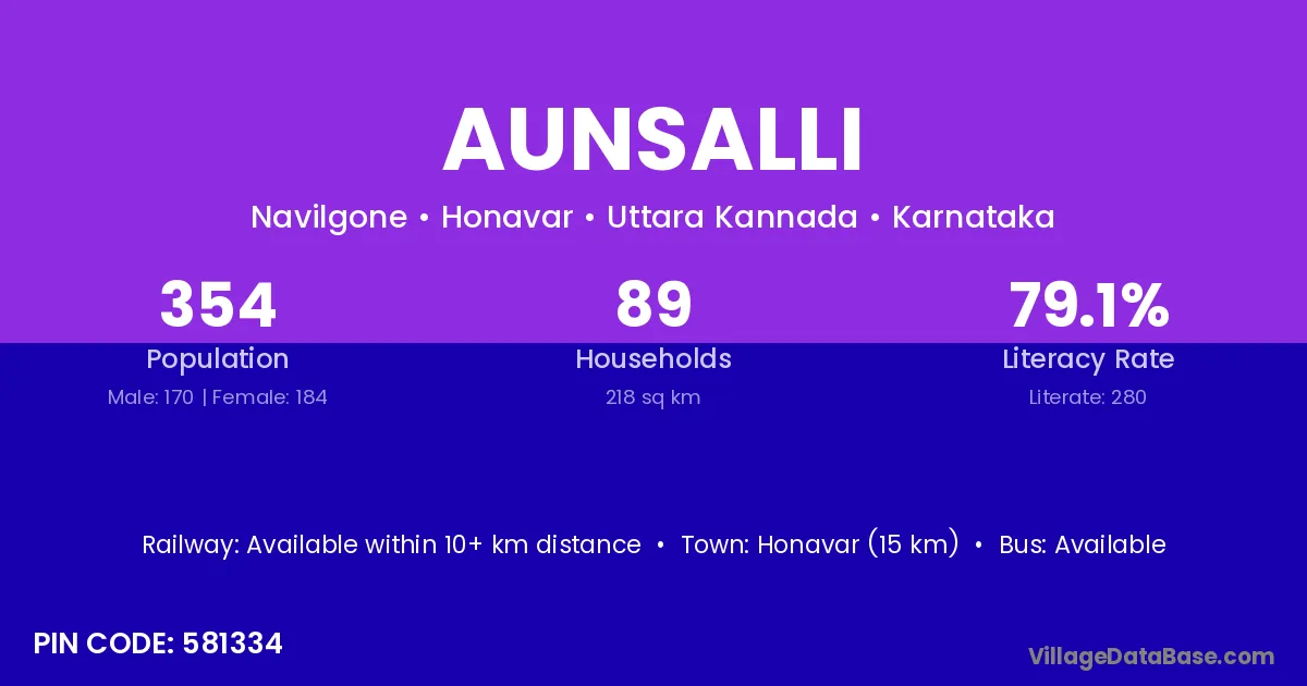 Honavar (15 km) is the nearest town to Aunsalli village for major economic activities and is located approximately 15 km away.