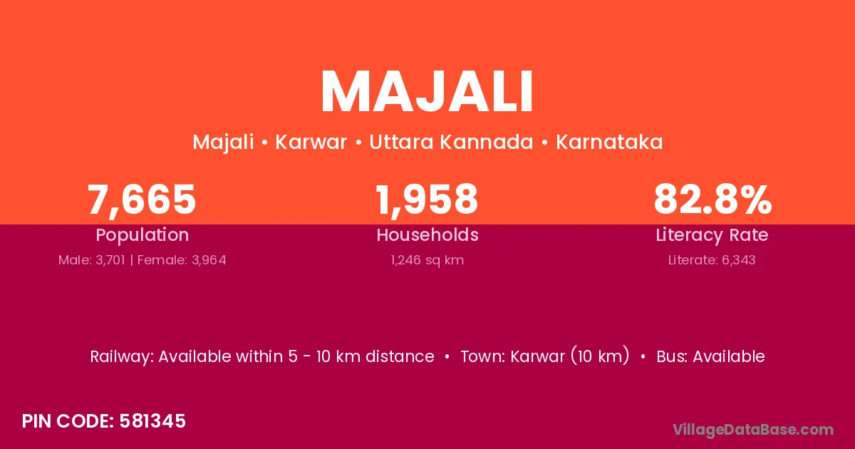 Karwar (10 km) is the nearest town to Majali village for major economic activities and is located approximately 10 km away.