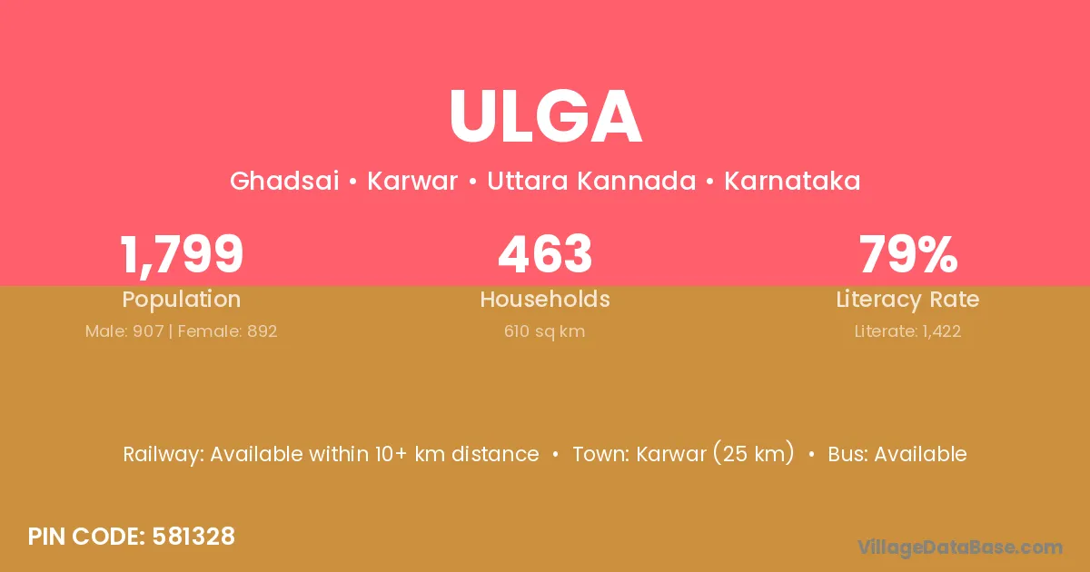 Karwar (25 km) is the nearest town to Ulga village for major economic activities and is located approximately 25 km away.